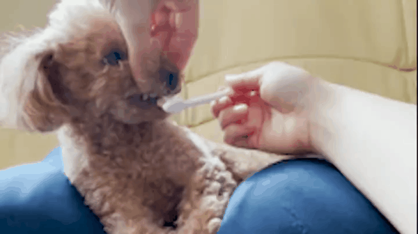 ワンちゃんが夢中の時にブラッシングをしたら汚れがポロっと取れちゃいます。今ではあんなに嫌いだったワンちゃんも歯磨きが楽しみに♪