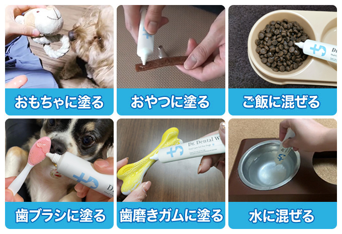 おやつ間隔でペロペロ舐めてくれるので、おもちゃに塗ったりご飯に混ぜるなど、さまざまなケアができます。