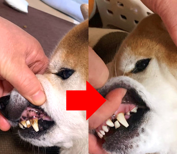 実際ワンちゃんは歯垢から歯石になるスピードが、なんと人の5倍も速いそうです。そのため毎日のケアがとても重要になります。